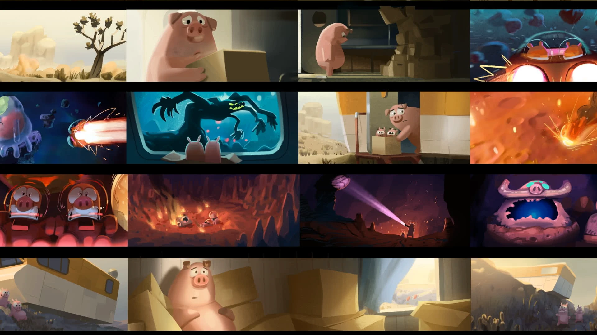 “We chose to complete the largest matte painting during development — the moment when the rocket blasts out of the trailer — and then passed the Nuke script and elements to DNEG Animation so they could reuse them across the rest of the sequence. It was very much a plug-and-play approach due to time constraints,” said Andy Baggarley, VFX Supervisor on Cardboard. Andy didn’t have all the fun though, as his son’s nursery class participated in Cardboard by scribbling some pretty awesome galaxies too!