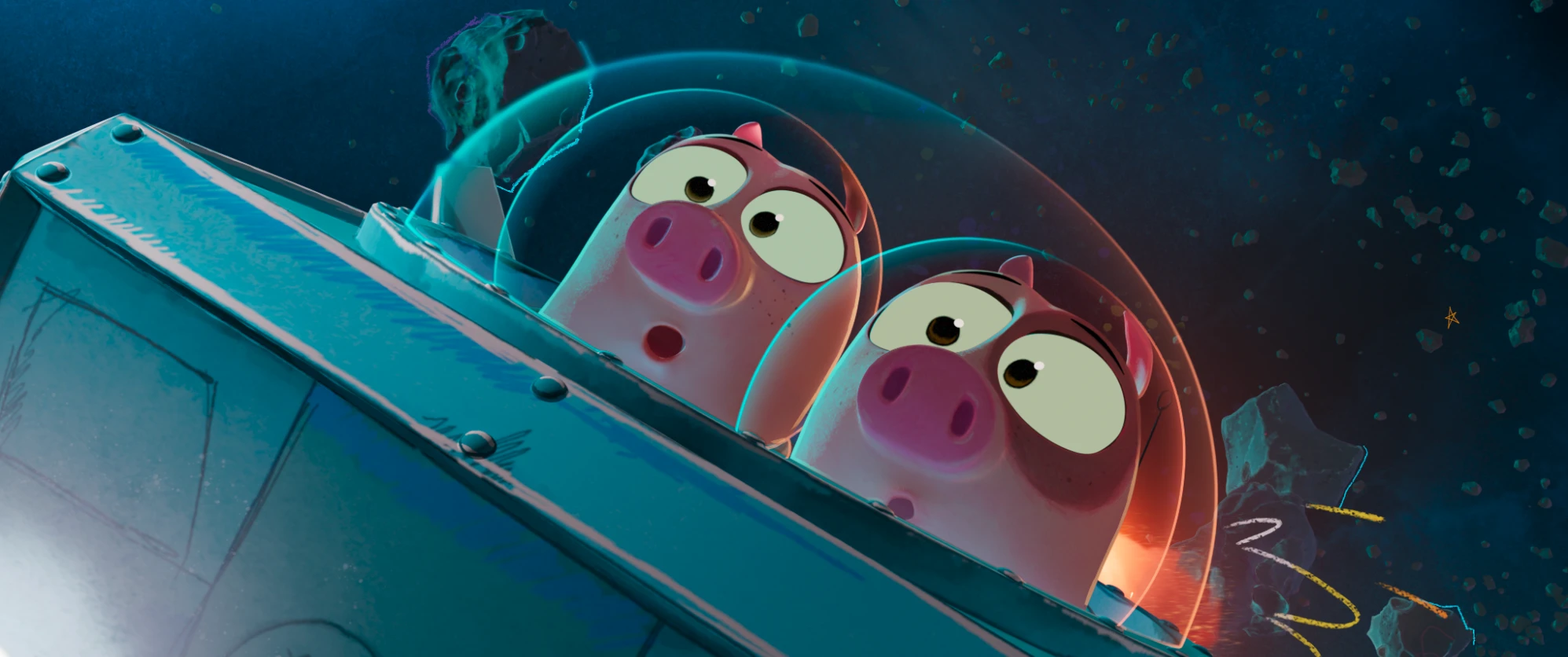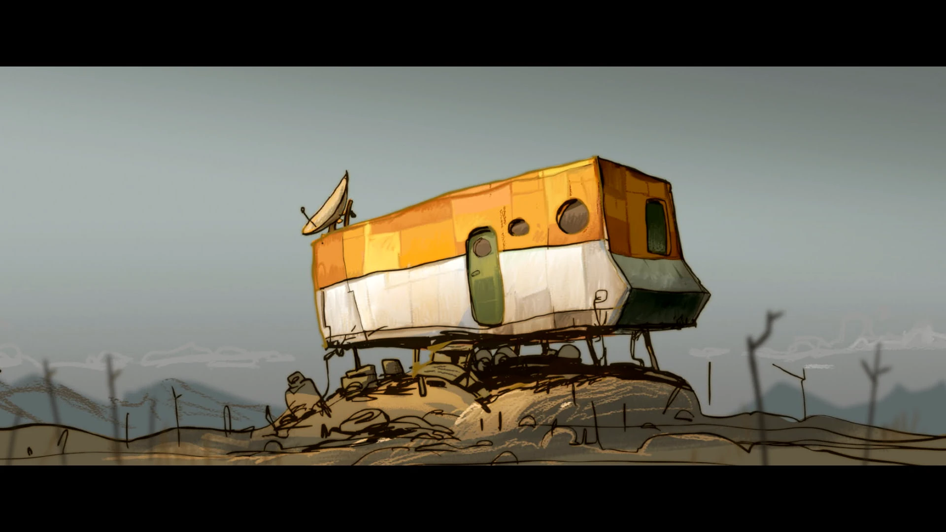 The children, on the other hand, embody the innocence of childhood by living entirely in their imagination. When the film shifts to their perspective, those rigid gray boxes explode into vast, hand-painted watercolor nebulas and giant asteroid fields, crafted meticulously to feel expansive, colorful, and free. “The kids are one dimensional in a way, as they’re experiencing the world and immersing themselves in it, not carrying baggage,” said J.P. “I wanted to carry this notion to the artwork itself by communicating this naivety in the texturing and rendering, so the naive line work and wilder watercolor expressed the way they are experiencing the world - more a sense of play and wonder,” added J.P. Vine, Director of Cardboard.